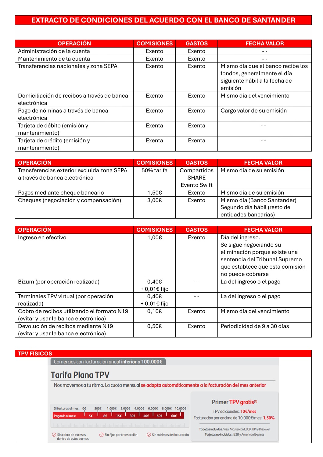 El acuerdo actualmente vigente es con el Banco Santander y para poder acceder al mismo, antes de acudir a una de sus oficinas para abrir cuenta y que se apliquen las condiciones acordadas, necesitamos que nos rellenéis el formulario que figura más abajo, de forma que podamos facilitaros toda la información necesaria para que podáis realizar el trámite sin dificultades y enviaros varios documentos, entre ellos el certificado que necesitaréis para que os apliquen el acuerdo.
